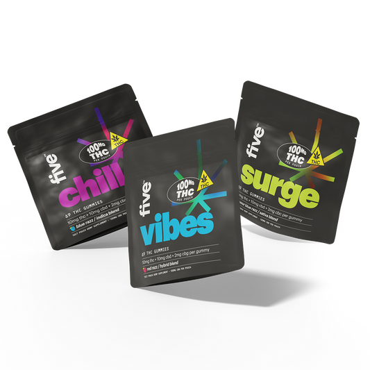 five uses federally legal hemp-derived cannabis and other high-quality ingredients. all of our certificates of analysis are available to the public to ensure transparency.