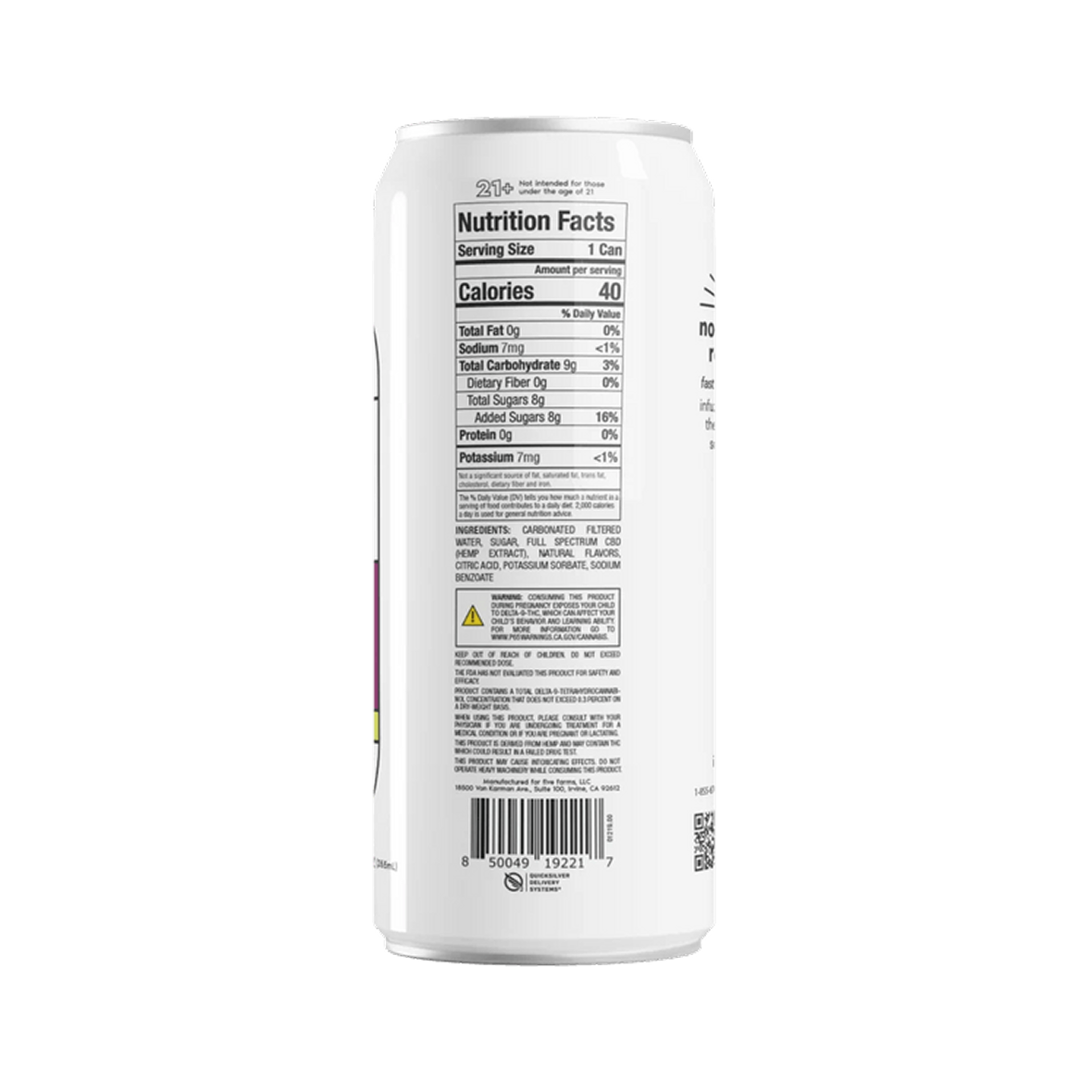 enjoy the buzz without the booze. crafted with 2mg of delta-9 thc and 2mg cbd with high vibes you can feel in under 15 minutes – making these perfect for pacing (or stacking) during hangs. indulge in a bold, refreshing black cherry flavor in every sip.