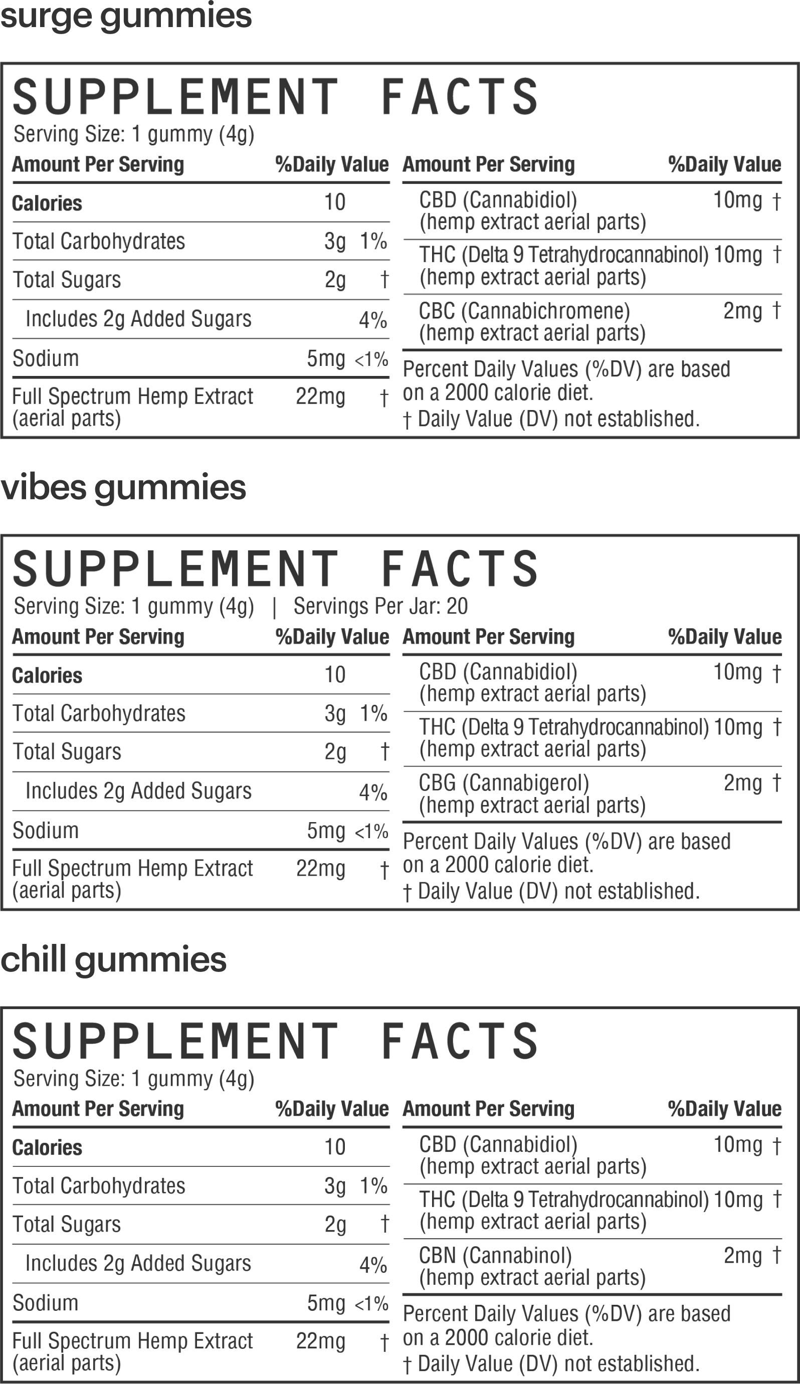 for those looking to keep it chill and breezy, our chill gummies keep you in full relaxation mode. Not a fan of just chillin’? Our surge gummies deliver straight vibes to cater to your uplifting-mood needs. for a more anytime vibe experience, our vibes are that sweet spot you need.
