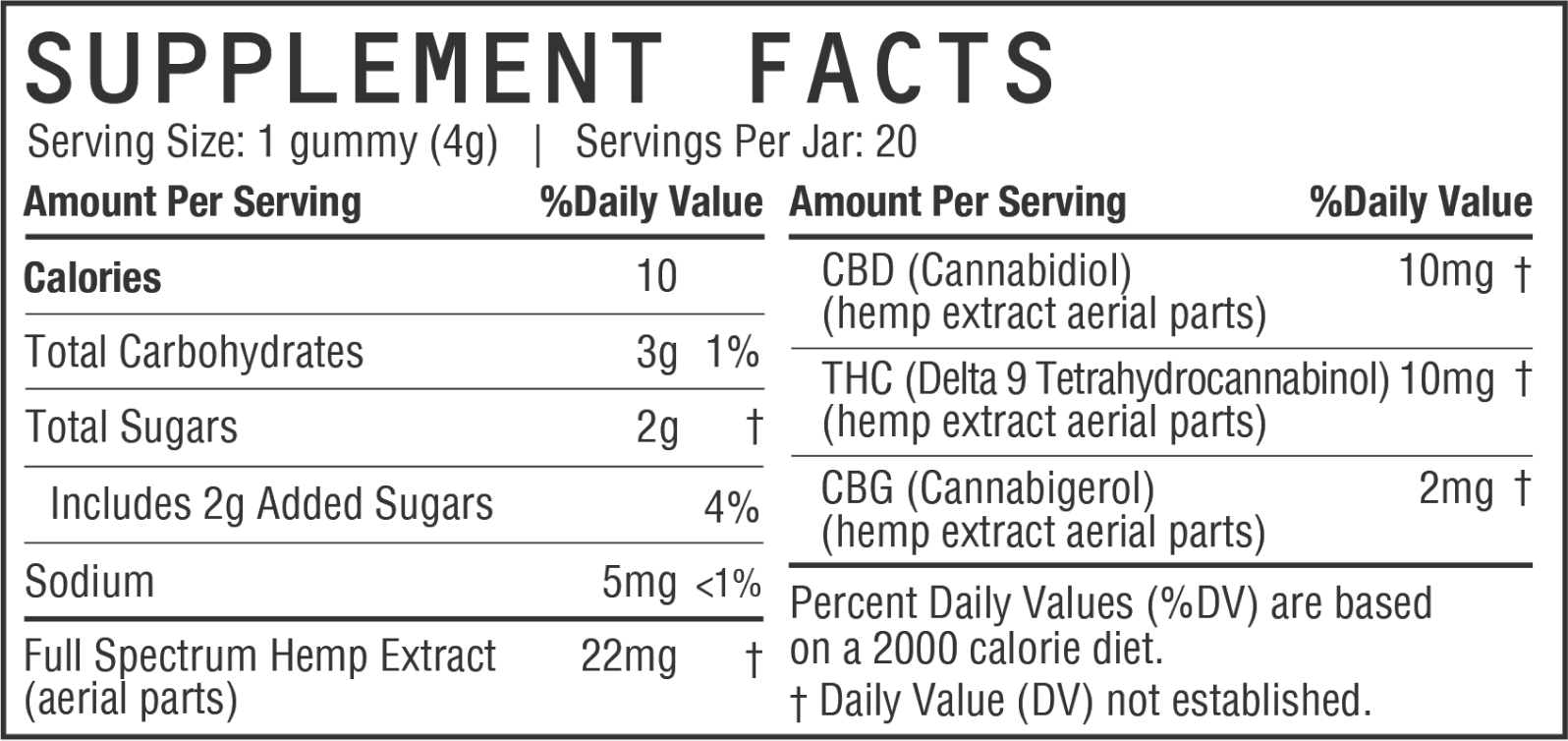 10MG THC | 10MG CBD | 2MG CBg > for that hybrid-like experience