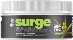 surge with five gummies, crafted with 10mg delta-9 thc and other cannabinoids for an energizing, fully powered buzz. enjoy the tangy sour blue razz flavor and keep the vibes high all day long.