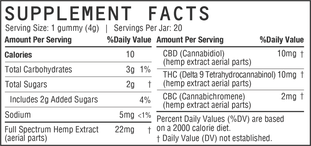 10MG THC | 10MG CBD | 2MG CBC > for that sativa-like experience