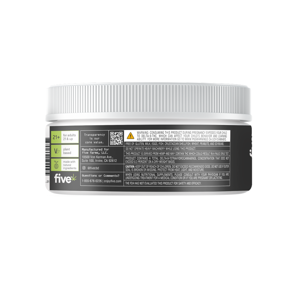 shoutout to the 2018 farm bill—our thc comes straight from hemp (same thc as marijuana), so five’s edibles hit just as hard as dispensary faves but stay federally legal, with states setting their own rules.